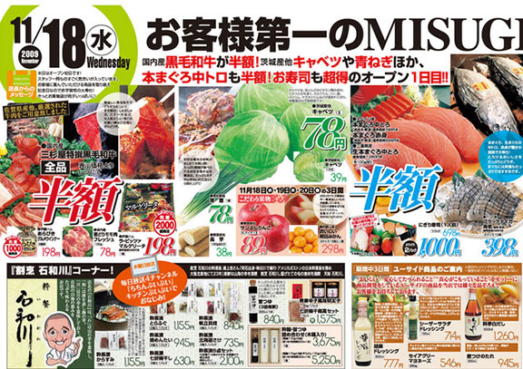 折り込みチラシでは地元の人にしかセール情報がリーチしない。分析では昼の人口の方が多い、つまり明石駅周辺には、他から働きに出て来ている人がたくさんいるという事がわかった。販促方法としては、折り込みチラシにくわえ、通勤者に届ける為に手配り用のハンドチラシを提案、ハンドチラシの商材としては、働くひとが帰ってそのまますぐにたべられるように、お弁当や惣菜等の商材を中心に構成した。